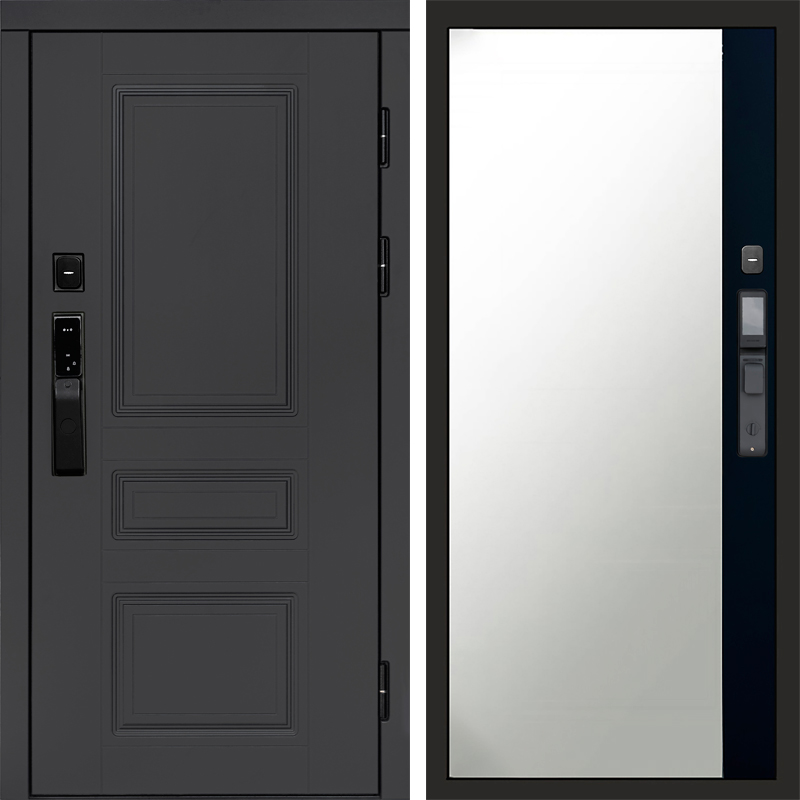 Входная дверь ВДК Орегон Графит с электронным замком - Широкое зеркало фацет Черный кварц