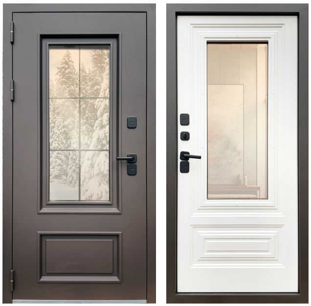 Входная дверь с терморазрывом и стеклопакетом Аляска RAL 8019 - Белый